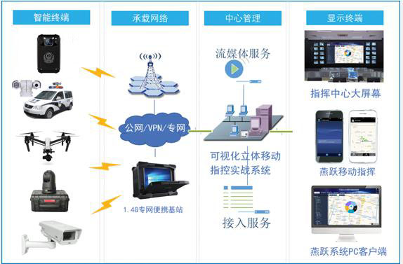 以互联网、物联网、云计算、视频技术、数据挖掘、智能搜索引擎为技术支撑,使救援队伍专业化、标准化、管理系统化、流程信息化、规范化、职能前置化、效能最大化、服务人性化,以充分提高抢险救援效能化为指导思想,同步实现人(4G单兵)、车、事(勤务管理、警情救援、抢险救灾,现场和非现场执法、消防知识普及、远程消防指导)、物(固定监控、无人机、移动视频传输设备等)、组织(部门、行业)的互联化、物联化、智能化全要素上图、质态可视的方式建设。将全面提升消防系统“统一、融合、智能、开放、节约、高效”的新一代消防工作的创新应用。