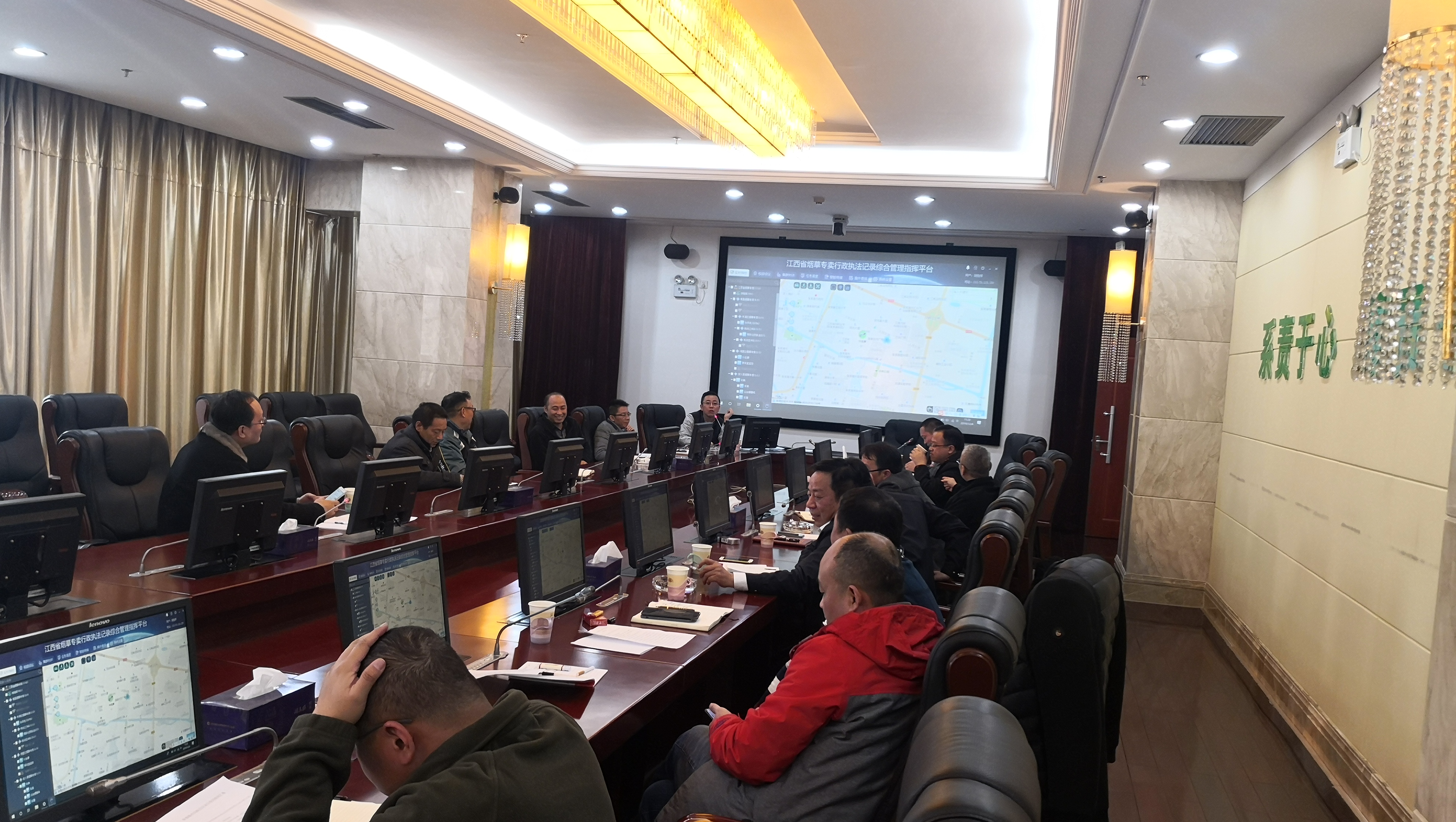真诚感谢江西省烟草专卖局相关专家领导给予我们这次交流合作的机会!在短短的两周时间内双方就用户的实际应用需求及目前的管理痛点,进行了基层执法实战应用测试及多维度应用交流与验证。最终获得各位专家领导的一致认可并于2019年12月4日在省局召开了关于江西省烟草专卖行政执法记录综合管理及指挥平台统一部署建设工作会议,会议中明确了平台集中建设及终端配备的统一要求并由我公司技术人员向参会的各地市烟草专卖负责人进行了整体解决方案的演示汇报。 建设全省统一的执法记录平台。利用平台的开放性和包容性,对符合国标标准的设备统一接入到平台,合理利用已购置设备,节约费用;所有记录数据自动归类,按照高清视频的标准汇聚至省局统一云端,实现数据自动上传,减少人工差错,减轻基层负担,防止视频资料丢失、删除和不经许可复制;实现集群对讲、智能派单和简易多方移动视频会议;利用4G、5G技术,实时传输到平台,实现执法过程可视化,通过人(4G执法仪/手机)、事(任务信息)、组织(省市县三级联动)将专卖执法、监督管理、应急指挥调度、案件管理等通过“一张图”有机的融合在一起,实现对执法人员执法规范、打击制假、售假窝点等进行全程实时化管控。